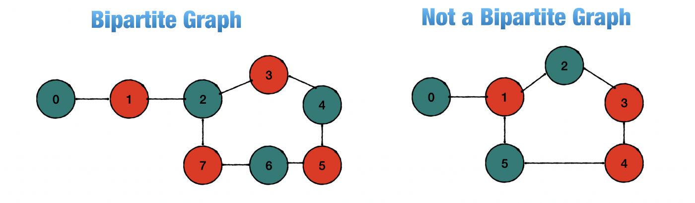 이때, 인접한 두 정점에 다른 색을 칠할 수 있다면 이 그래프는 이분 그래프이고, 반대로 인접한 두 정점이 같은 색을 가지면