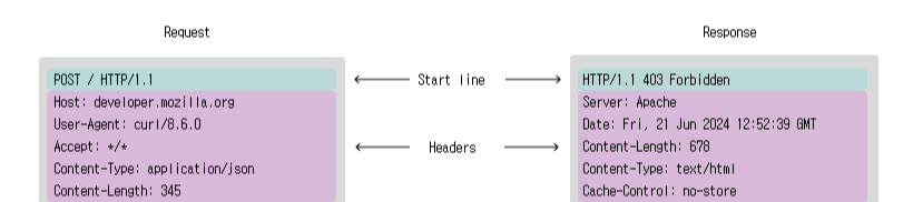 Request의 경우 field-name은 Host, field-value는 developer.mozilla.org이다.