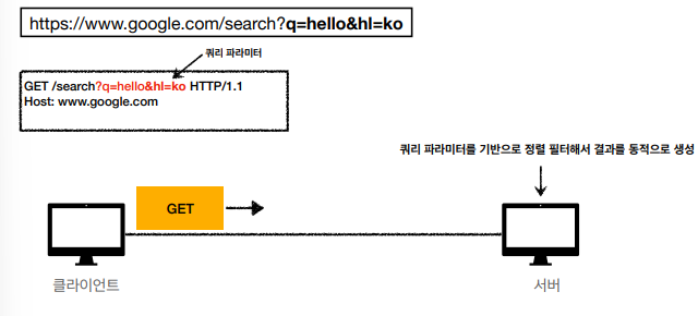 GET은 쿼리 파라미터를 사용해서 데이터를 전달하게 된다.