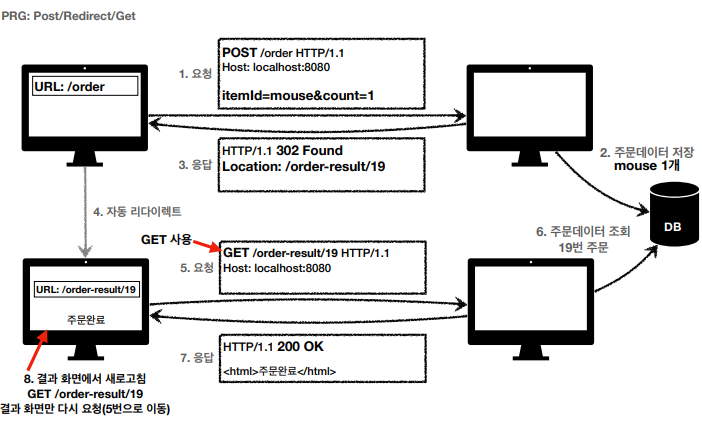 POST로 주문 한 후에, 주문 결과 화면을 GET 메서드로 리다이렉트 시켜야 한다.