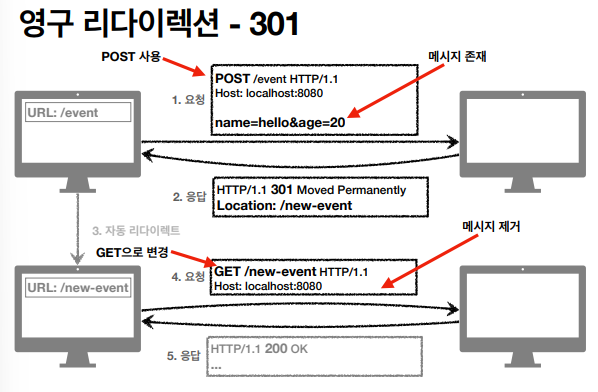 - 영구 리다이렉션 : 특정 리소스의 URI가 영구적으로 이동