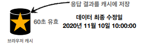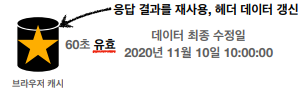 캐시가 있을 때, 웹 브라우저에서 star.jpg 요청 -> 서버는 응답 헤더에 cache-control: max-age=60이라는 헤더를 넣고 응답